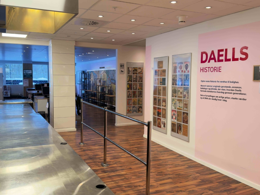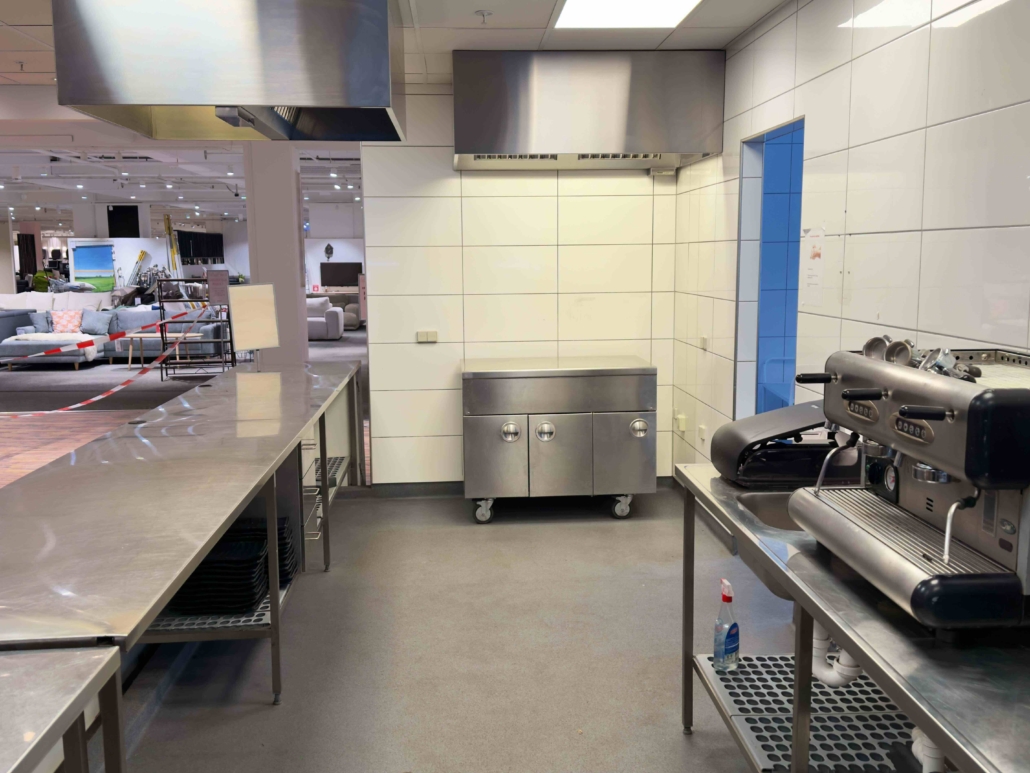 Her får du et toptrimmet caféområde med professionelt køkken, lige dér hvor gæsterne allerede bevæger sig rundt i møbeludstillingen.