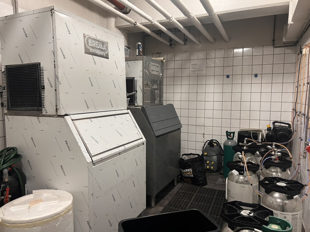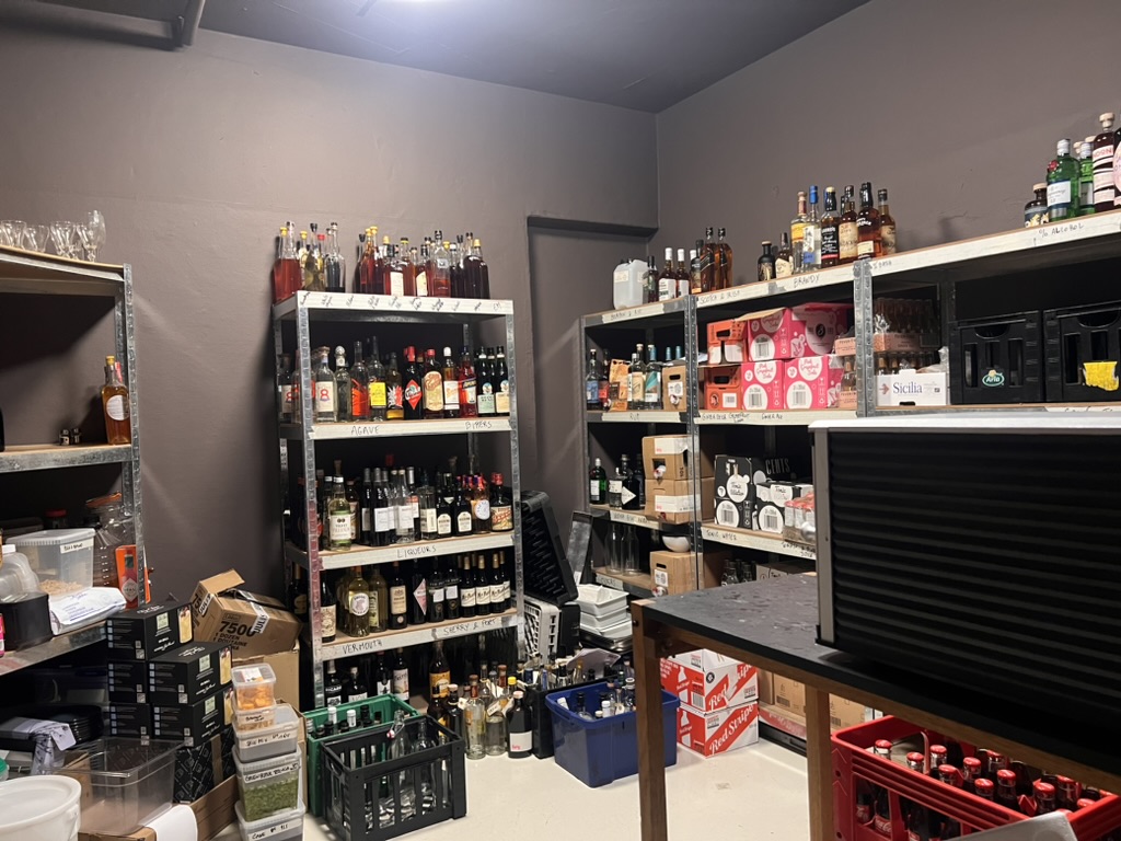 I kælderen er der et større kontor med plads til spiritus opbevaring og der er et lagerlokale samt tilstødende lokale med ismaskiner og emballage opbevaring og direkte udgang til parkeringskælderen. Her er ligeledes plads til, at etablere garderobe område.
