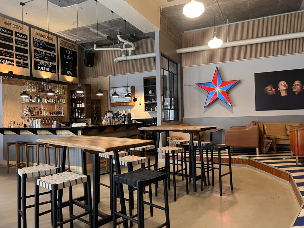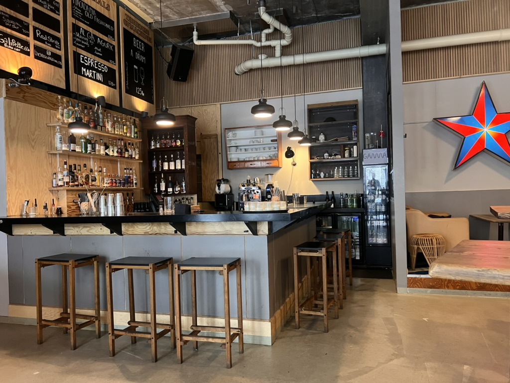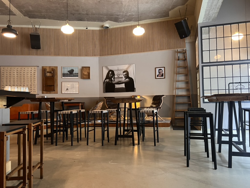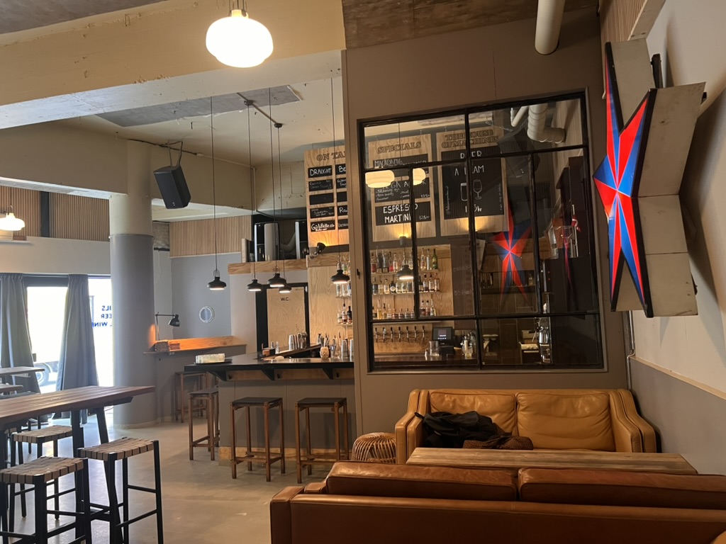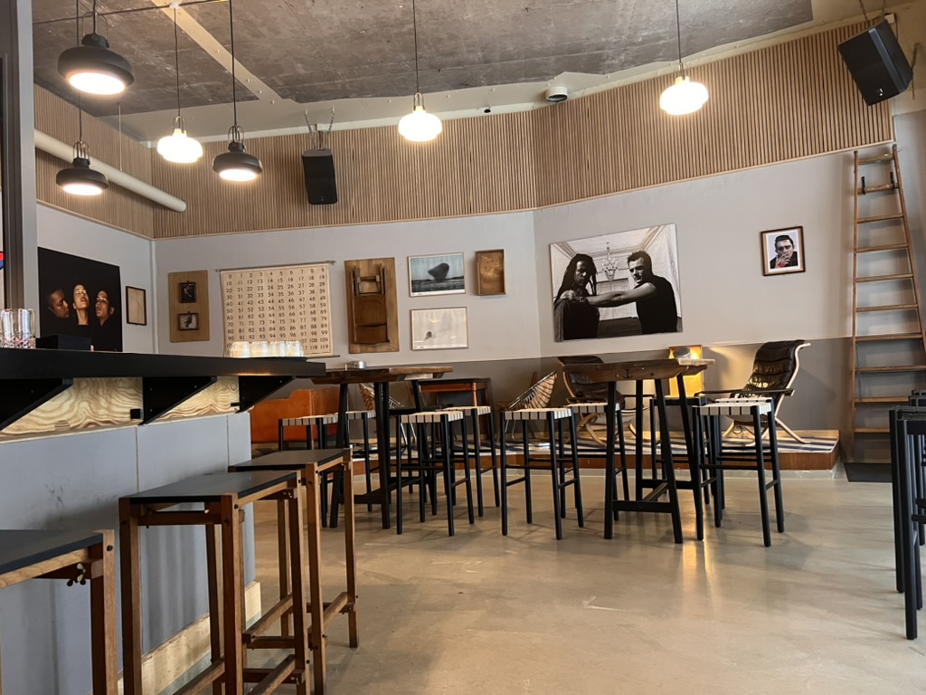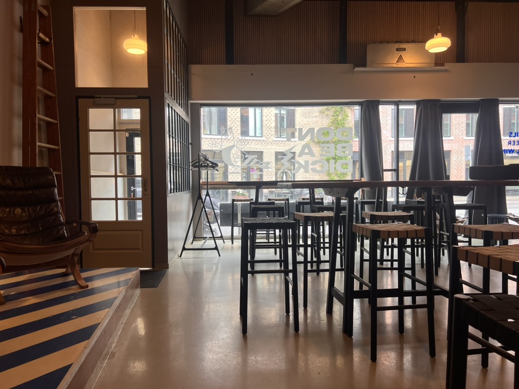 Baren er meget højloftet og indrettet i lyse farver med nordiske klassiske møbler, der giver stedet en både industrielt og hyggelig atmosfære. Der er bygget en stor rummelig bar med god arbejdsplads og direkte adgang til en prep køkken med opvask og opbevaring.