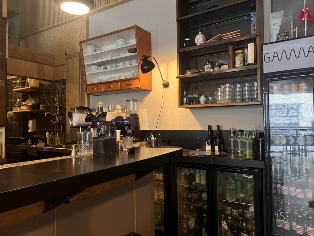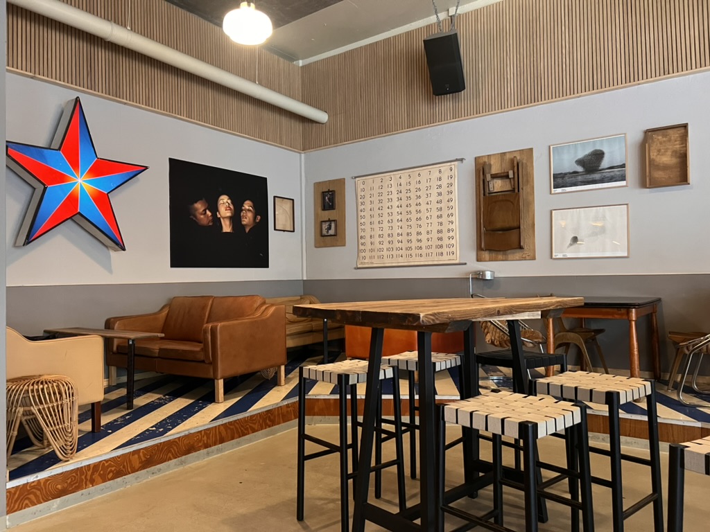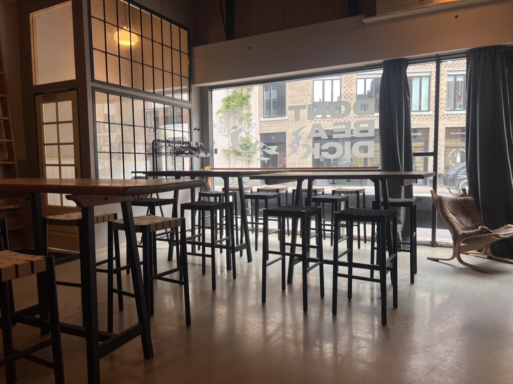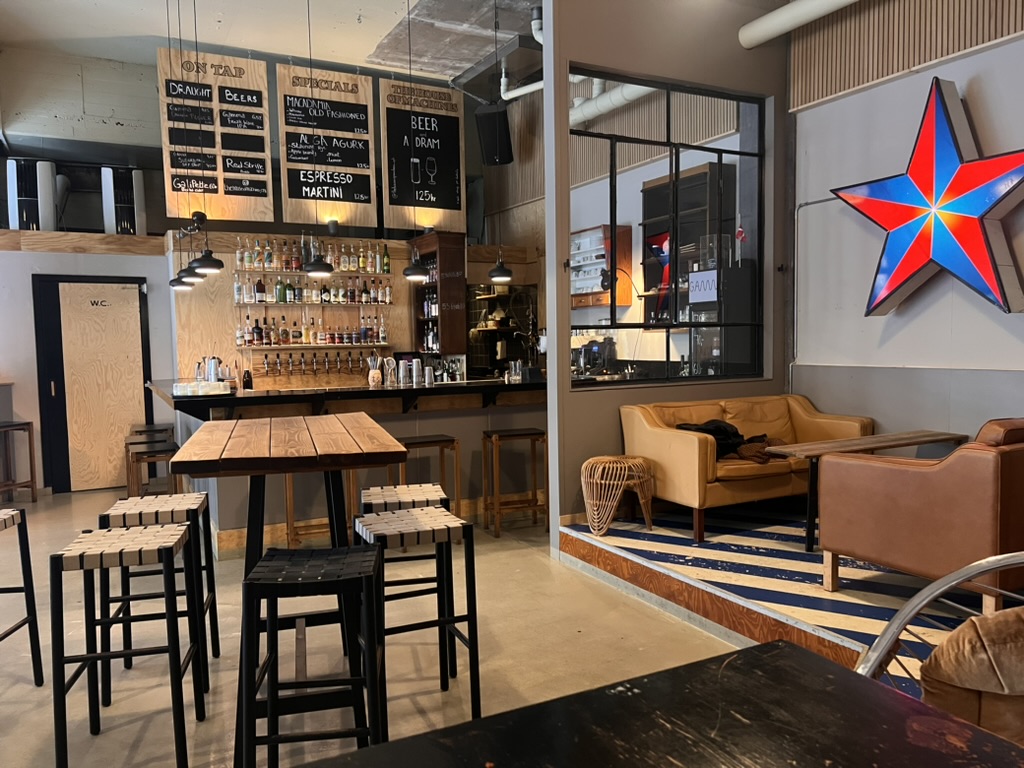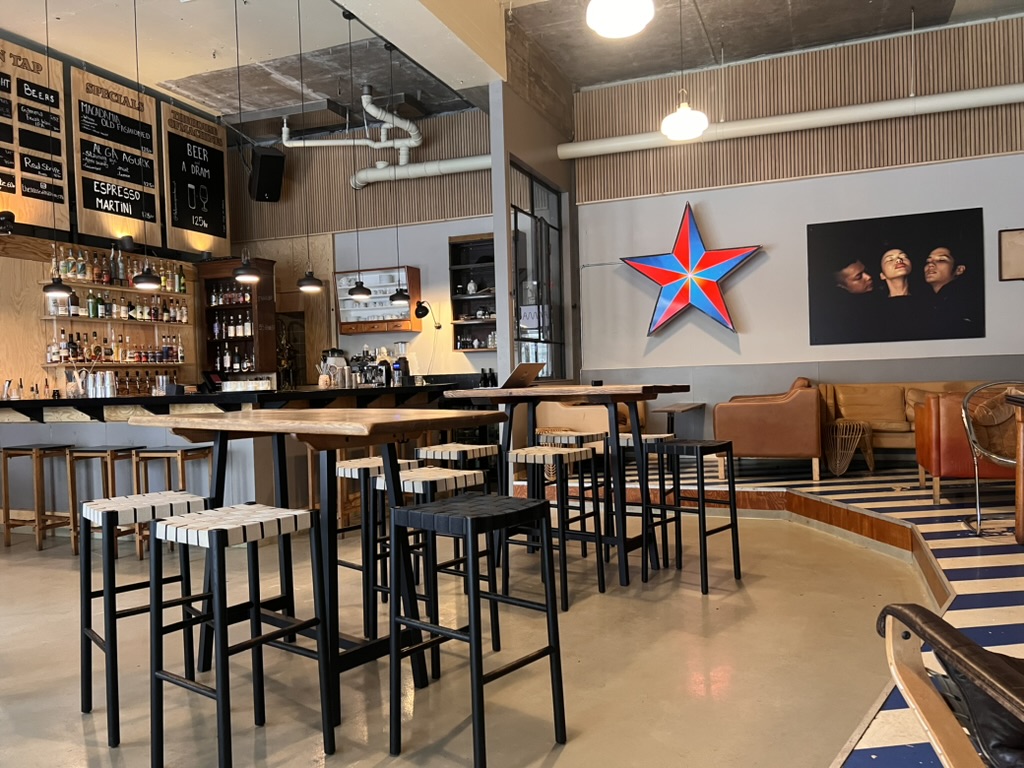Baren er meget højloftet og indrettet i lyse farver med nordiske klassiske møbler, der giver stedet en både industrielt og hyggelig atmosfære. Der er bygget en stor rummelig bar med god arbejdsplads og direkte adgang til en prep køkken med opvask og opbevaring.