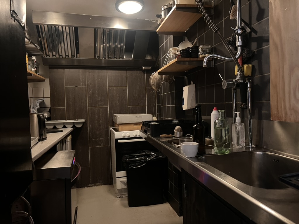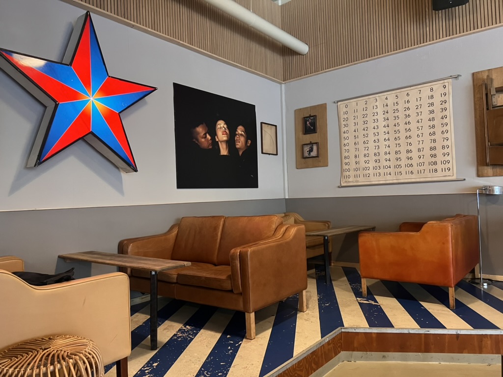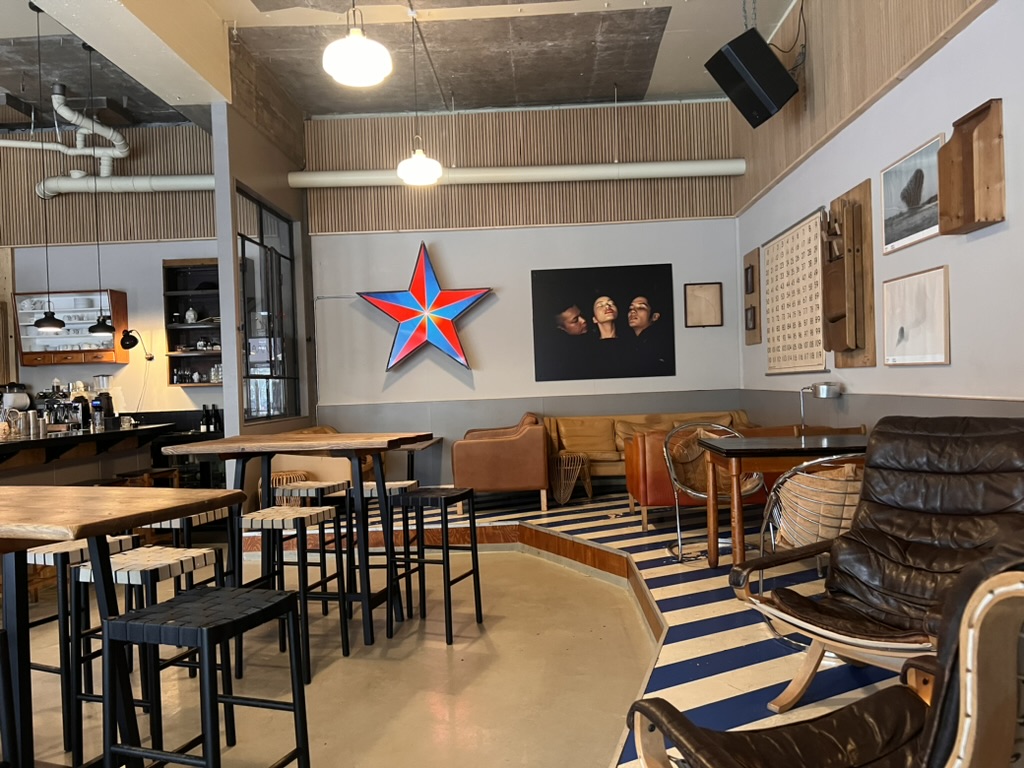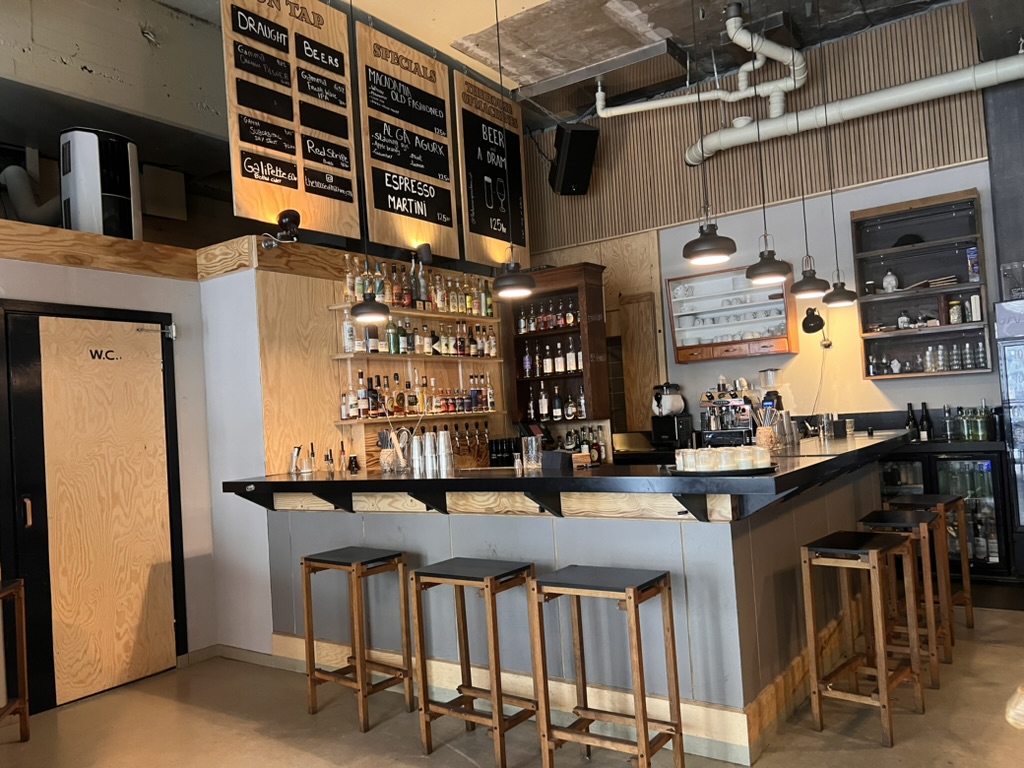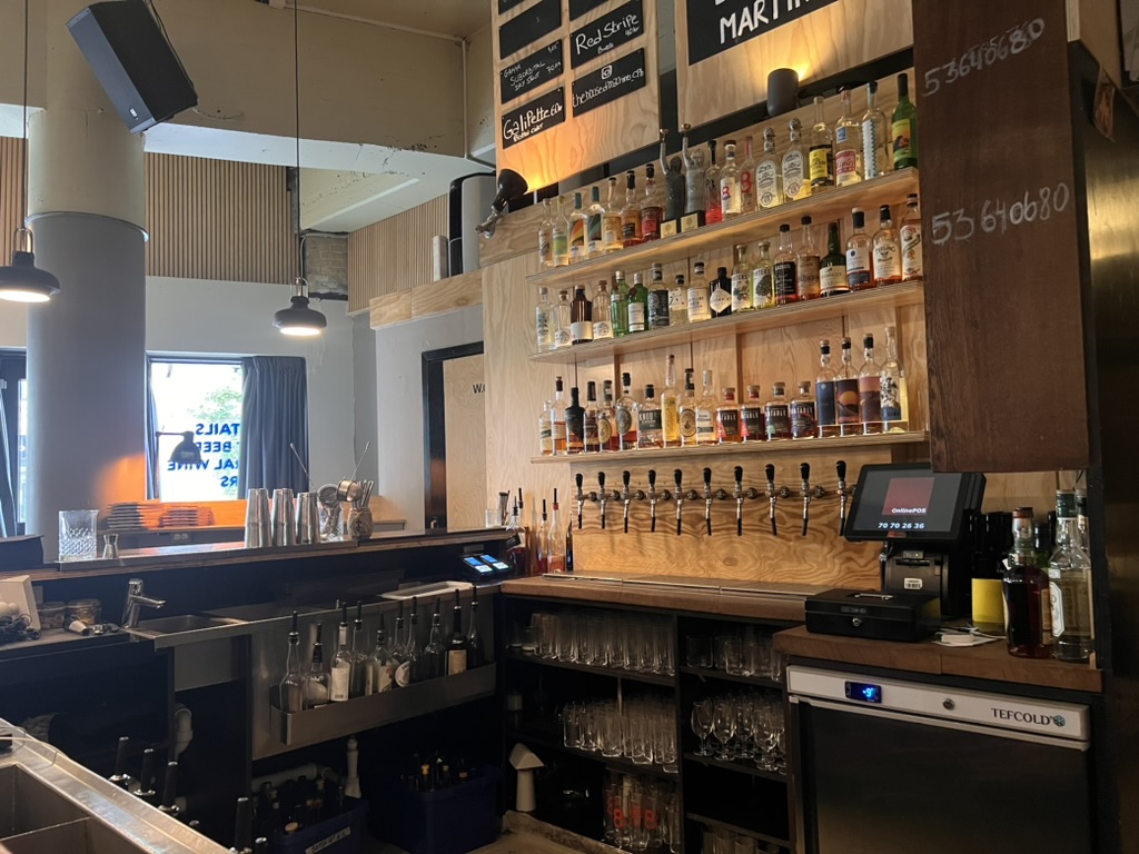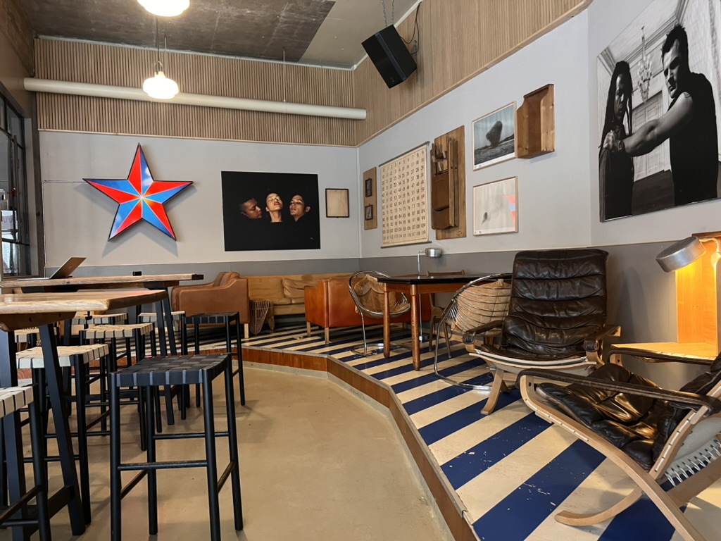 Baren er meget højloftet og indrettet i lyse farver med nordiske klassiske møbler, der giver stedet en både industrielt og hyggelig atmosfære. Der er bygget en stor rummelig bar med god arbejdsplads og direkte adgang til en prep køkken med opvask og opbevaring.