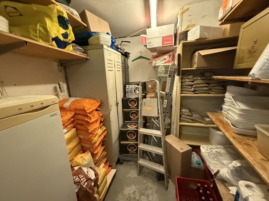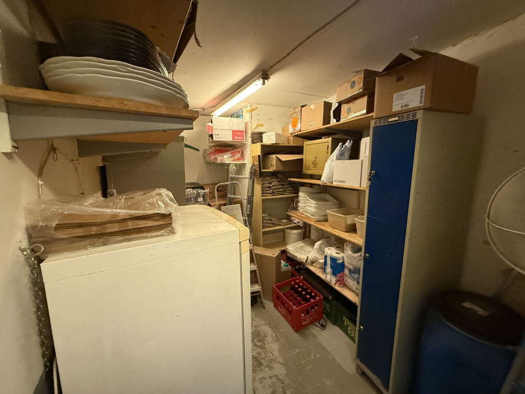 I gårdens baghus findes et rummeligt kølerum, lagerfaciliteter samt personaleområder – en praktisk og værdifuld ekstra plads, der giver optimale driftsmuligheder.