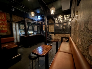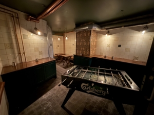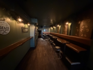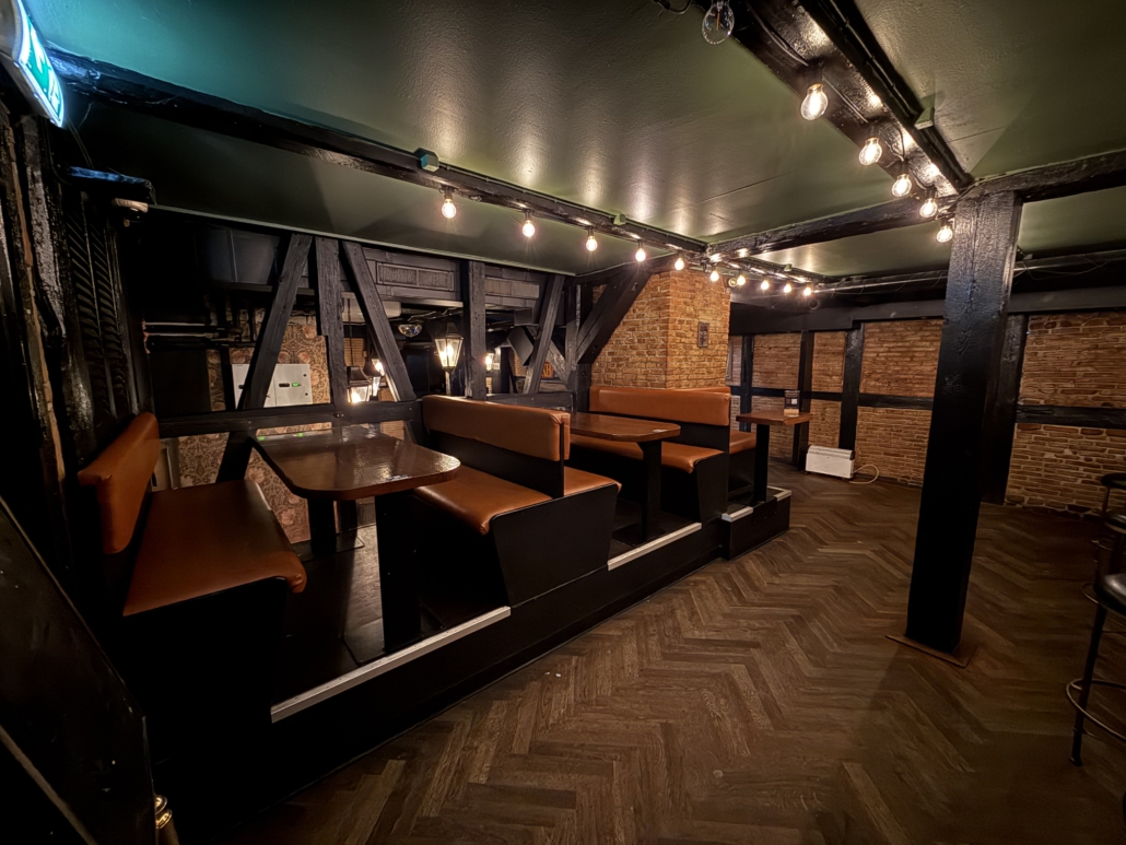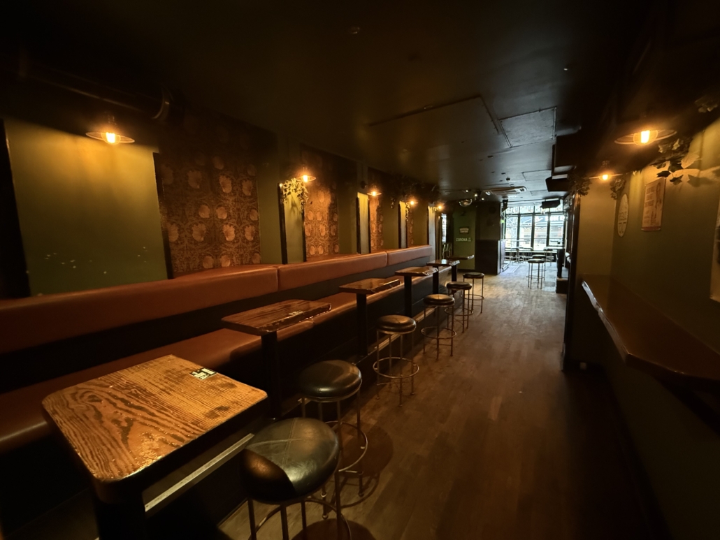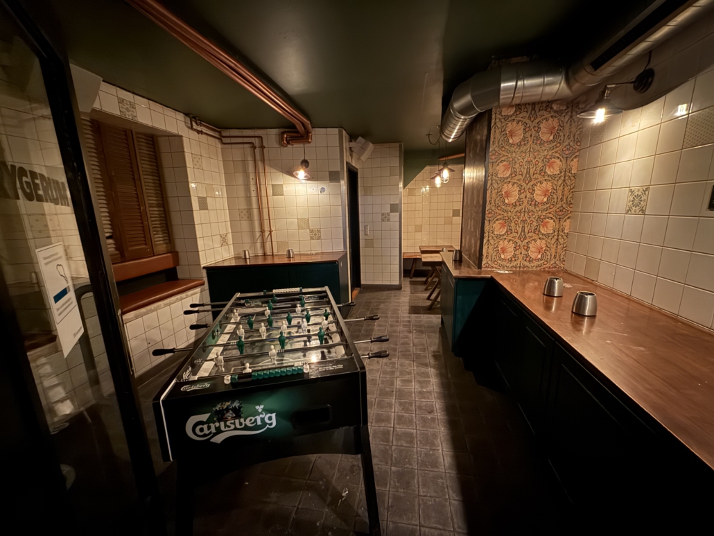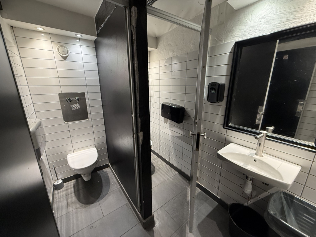 Lokalerne byder på et stort og indbydende frontområde med rummelig bar, DJ-plads, dansegulv og siddepladser. Bagved finder du endnu et stort lokale med bar, hyggelige opholdszoner og rygerum. I kælderen er der god lagerplads samt installationer til fadølsankre, som fordeles effektivt til barerne via slangesystem. Dertil kommer solide toiletforhold og garderobe – alt er på plads til drift i højt gear.