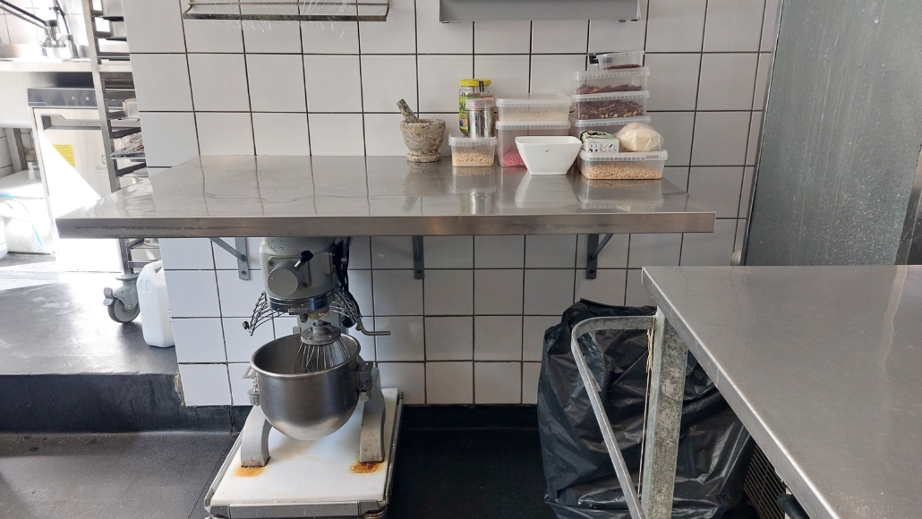 Forretningen er indrettet med et veludstyret køkken bagerst i bygningen og i forlængelse af butiksarealet. Forrest i forretningen er der stor disk, til ekspeditioner af take away.