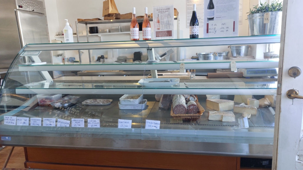 En væsentlig del af forretningens omsætning er på catering og take away, som er en integreret del af den daglige drift, men forretningen er også indrettet med vinhandel med fokus på vine fra Italien.