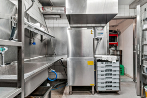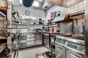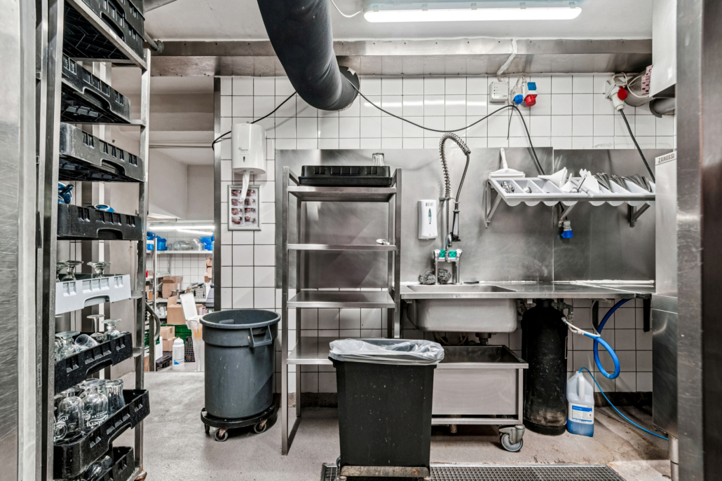 Der findes et professionelt og veludstyret produktionskøkken med separat opvaskerum i underetagen samt et åbent servicekøkken i selve restauranten, hvilket giver effektiv drift og god gæsteoplevelse.