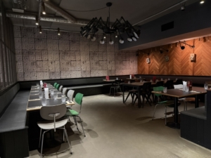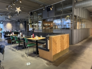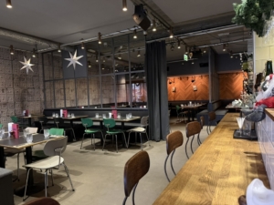 Lejemålet byder på et imponerende og fleksibelt serveringsareal med plads til ca. 200–300 gæster. De rå rammer har oprindeligt haft et fabriksagtigt udtryk, men er i dag opdelt med gennemtænkte skillevægsløsninger, der skaber en charmerende, intim og stemningsfuld atmosfære med mulighed for flere zoner og oplevelser i samme lokale.