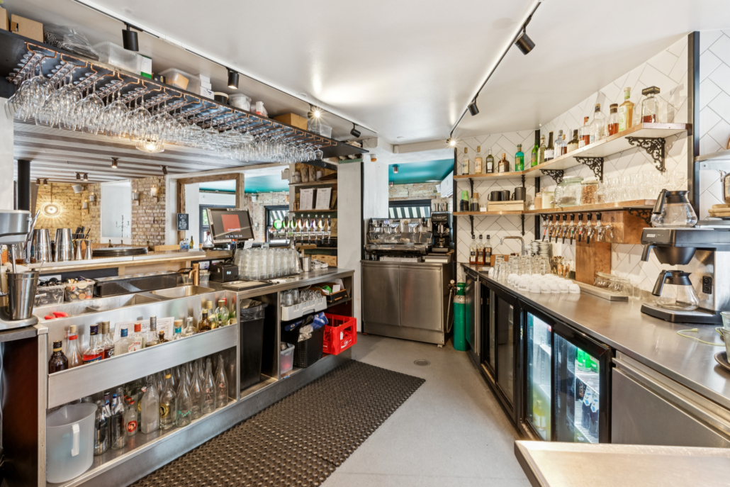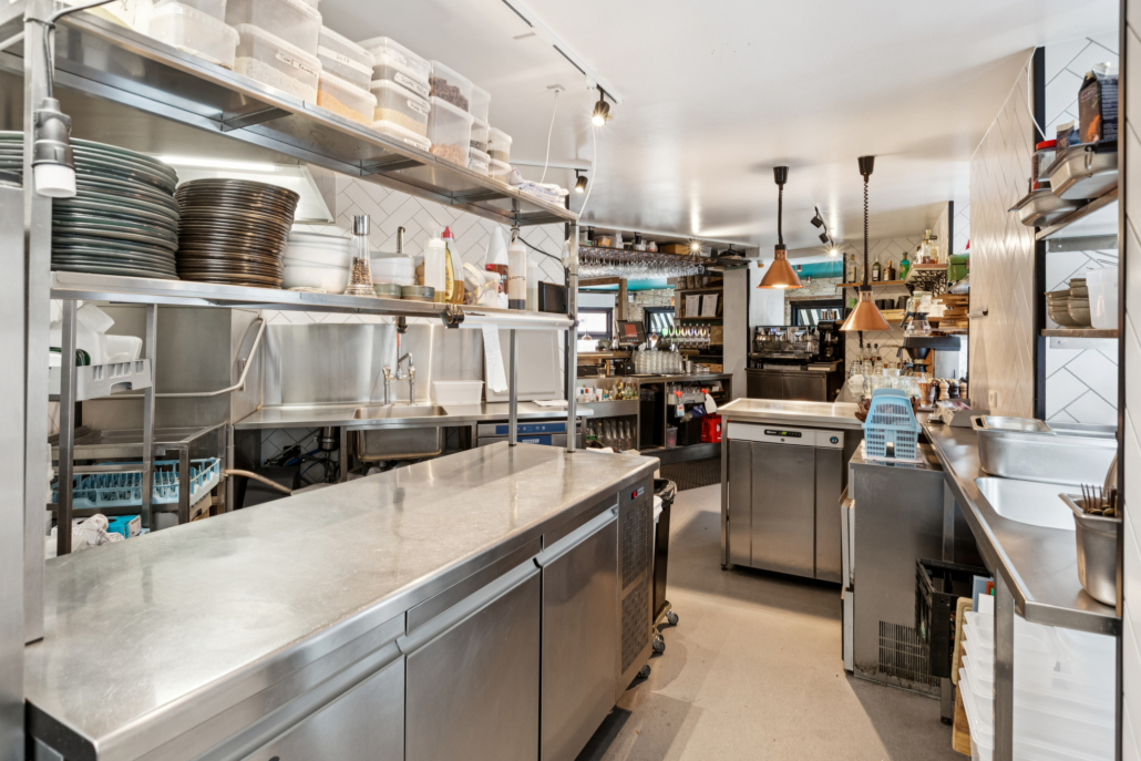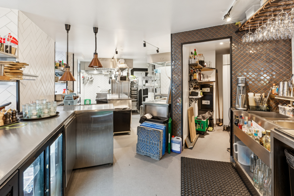 Forretningen fremstår skarp, stilren og indbydende med nyistandsat interiør fra A-Z. Her er bygget et moderne og lyst åbent køkken, som skaber de perfekte rammer for alt fra cafédrift til vinbar, tapasbar, bistro eller cocktailbar – mulighederne er mange.