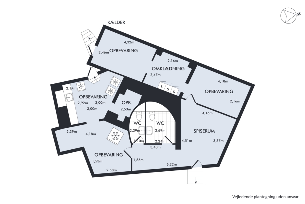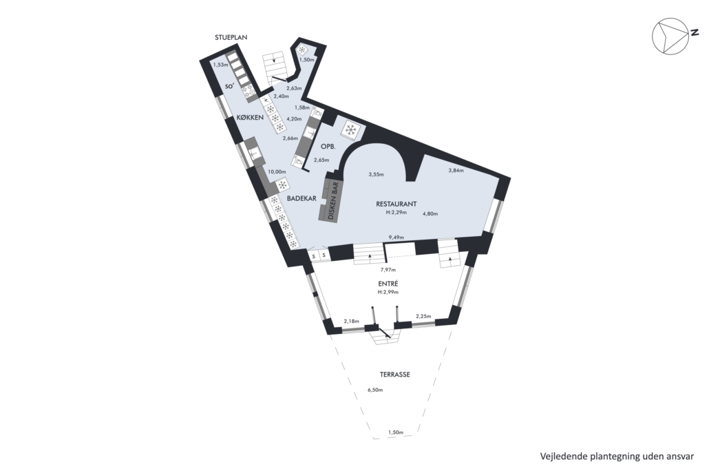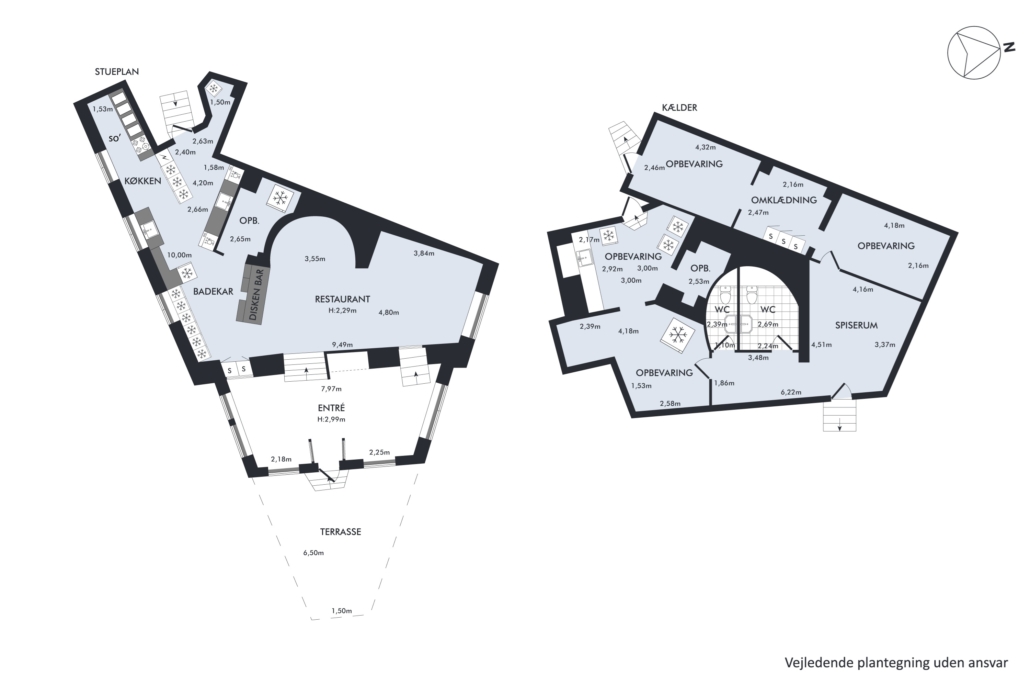 Lokalet er lyst og atmosfærefyldt med en niveaudelt planløsning, der nemt kan tilpasses forskellige koncepter og stemninger. I kælderen finder man helt nye gæstetoiletter, personaleomklædning samt rigelig lagerplads.