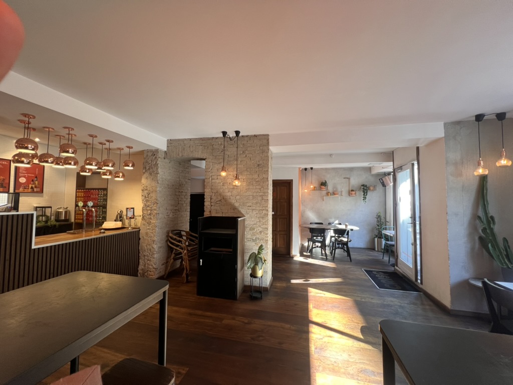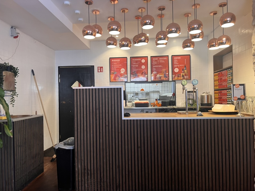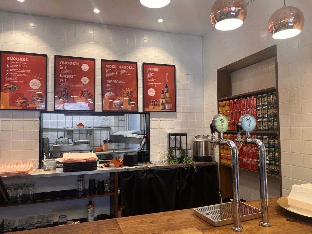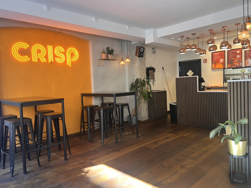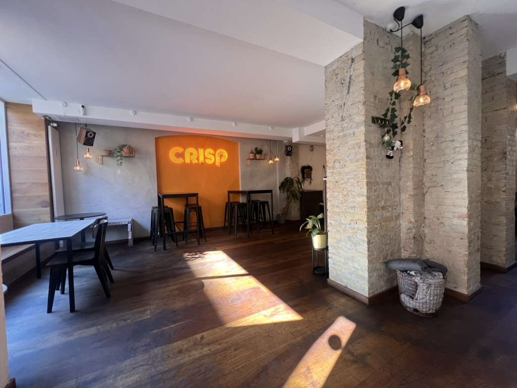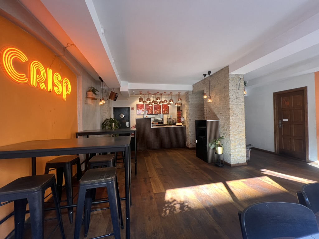 Lokalet byder på et lyst og indbydende serveringsareal, som er opdelt i flere hyggelige områder med et behageligt lysindfald fra de store facadevinduer. Her er skabt en intim atmosfære, der passer perfekt til både spisegæster på farten og dem, der ønsker at nyde et måltid i rolige rammer.