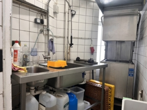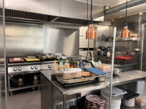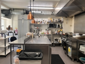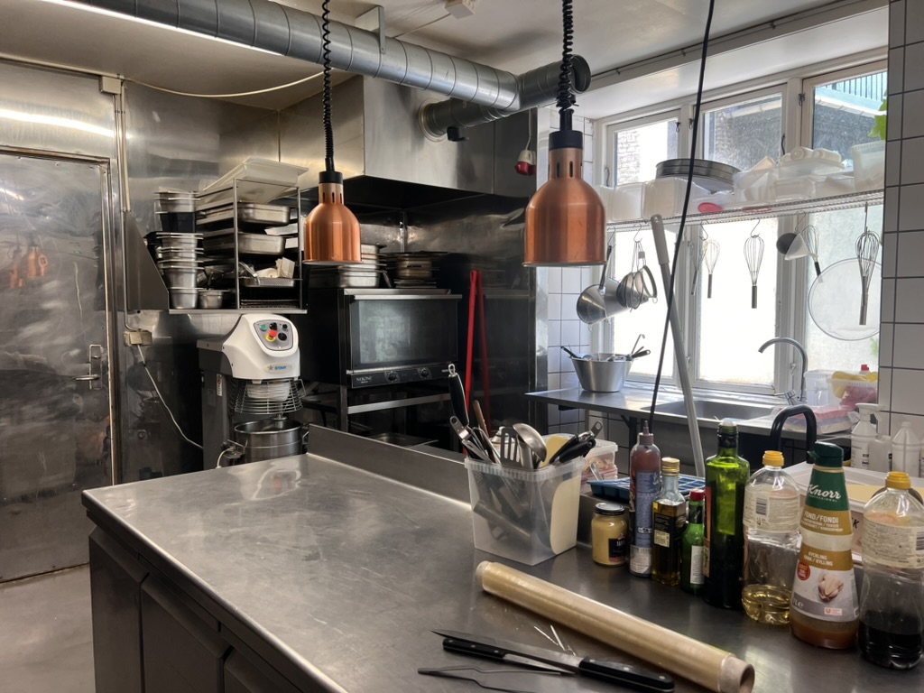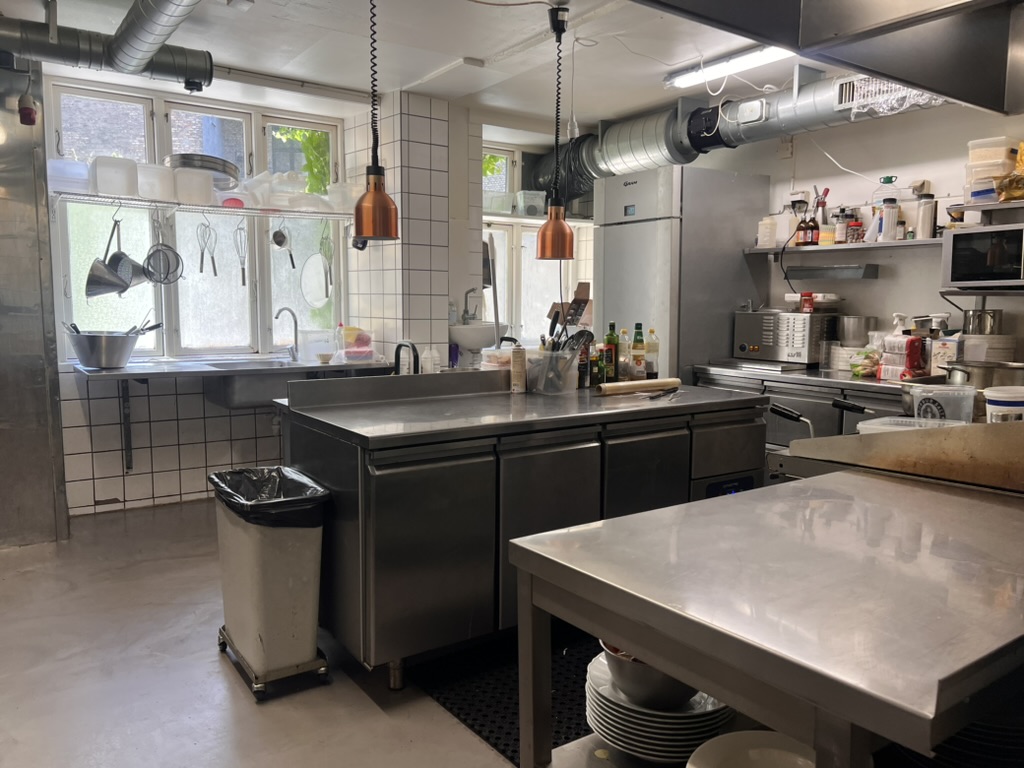 Køkkenet er rummeligt og indrettet med alt nødvendigt inventar og udsugning over tag. Ved siden af er der et seperat opvaske rum.