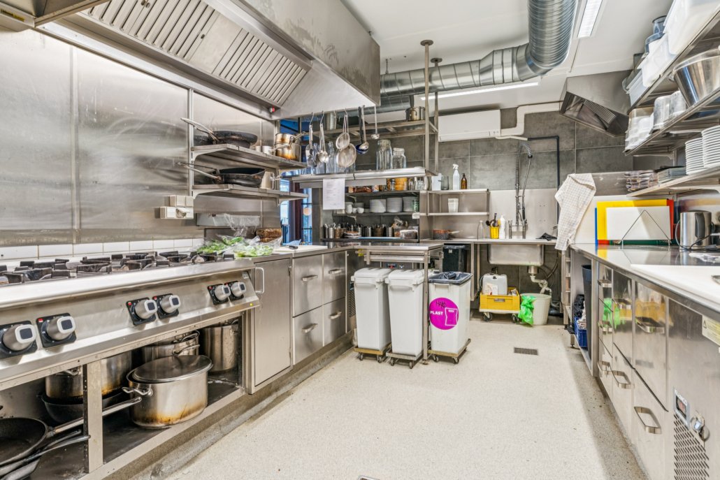 Restauranten er fuldt udstyret med et professionelt køkken med kvalitetshvidevarer, en flot bar med indbygget fadølsanlæg samt moderne og præsentable gæstetoiletter. Alt fremstår pænt og velholdt og klar til brug.