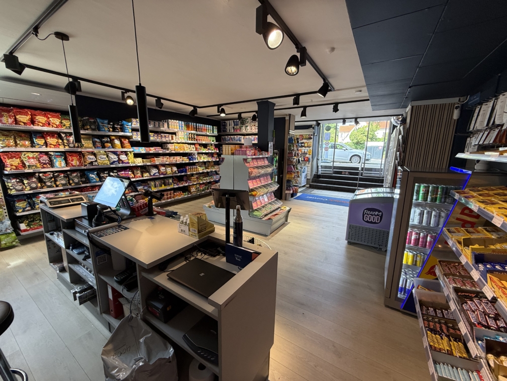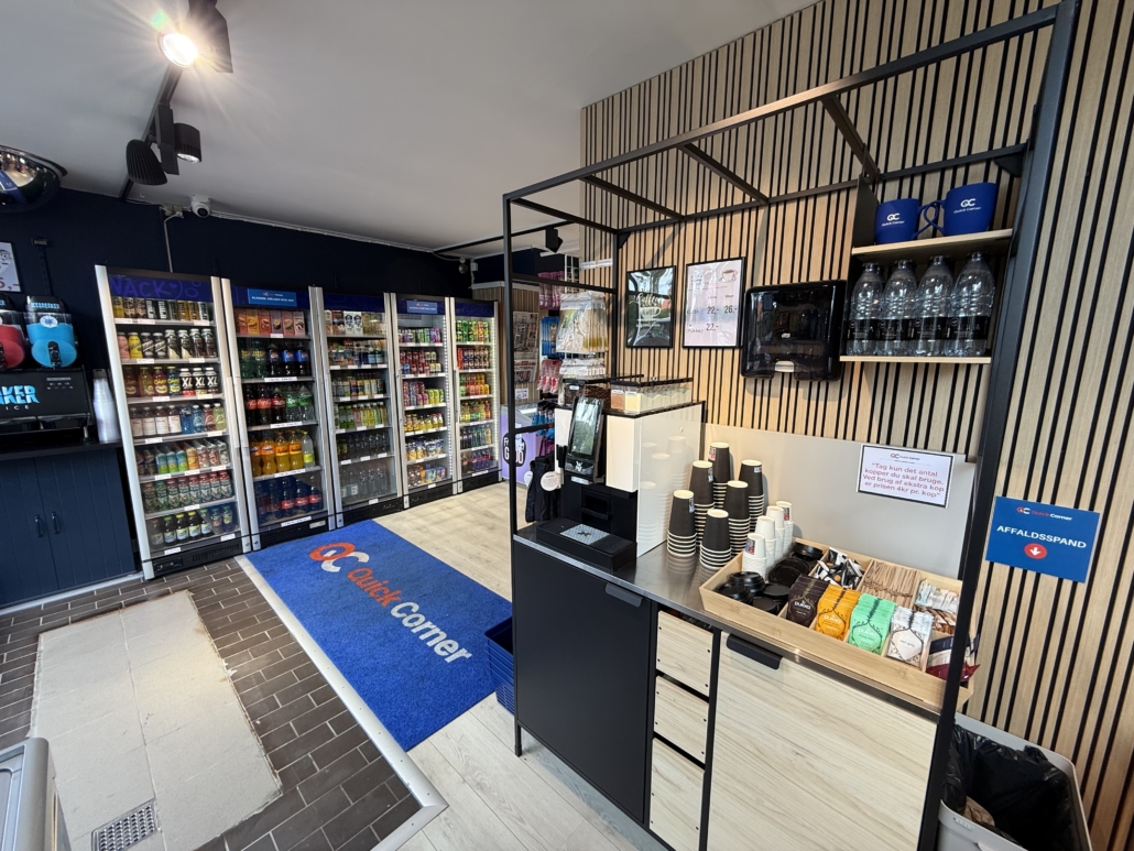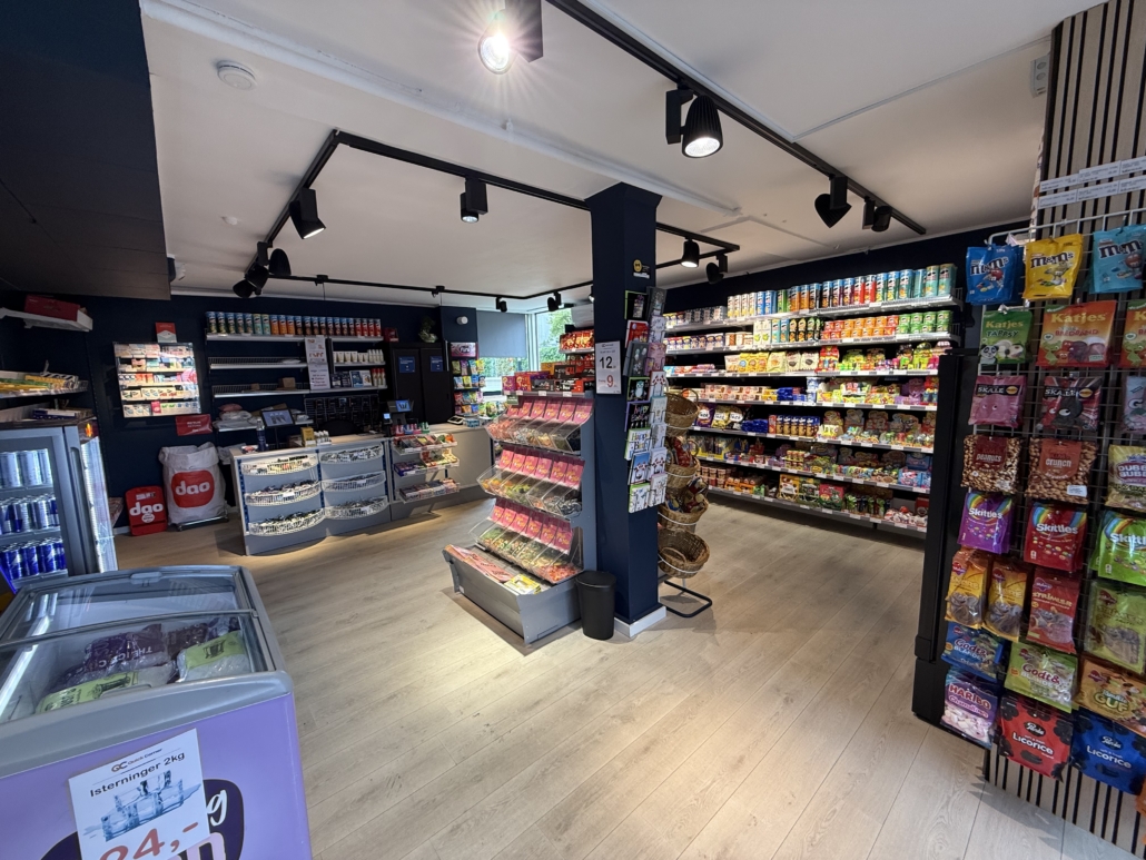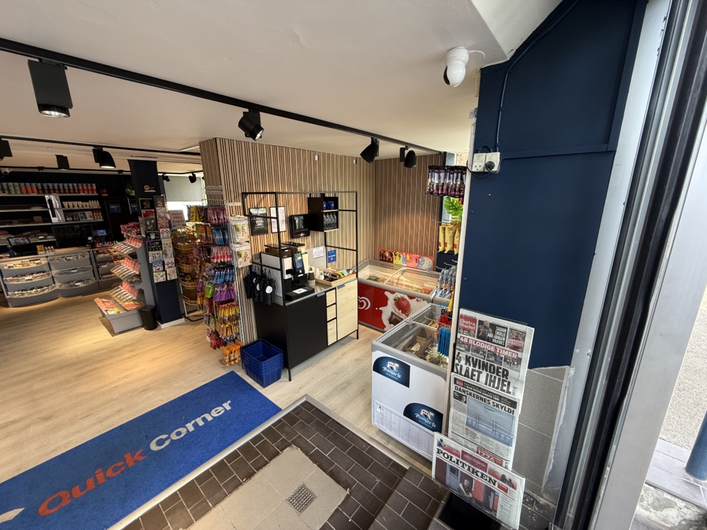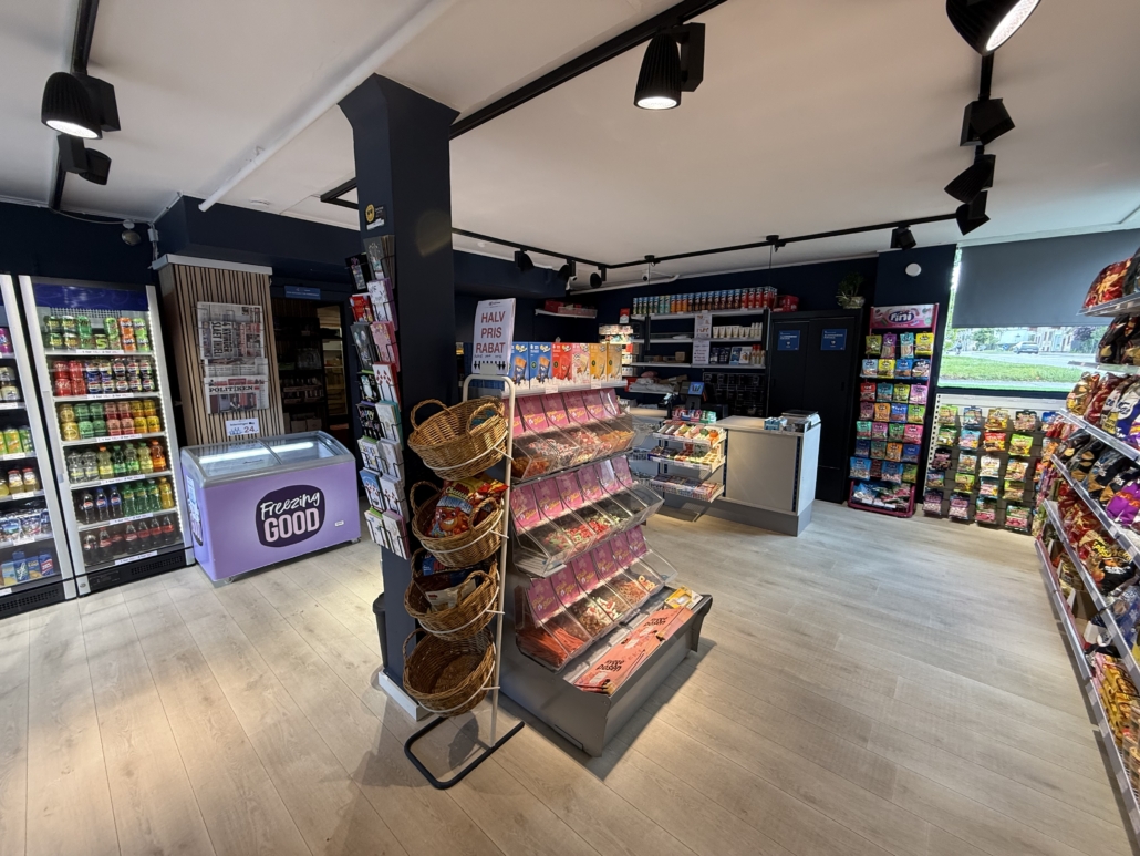 Kiosken fremstår lys og moderne med nye gulve, nye vinduer og et flot, åbent salgsområde udstyret med nyt inventar, køl- og frysefaciliteter samt professionel kaffemaskine. Det meste af inventaret – og hele varelageret – medfølger i handlen, så du kan komme i gang med det samme. Der er allerede indgået samarbejde med DAO som leveringshub, og her er oplagt mulighed for at udvide med flere fragtpartnere.