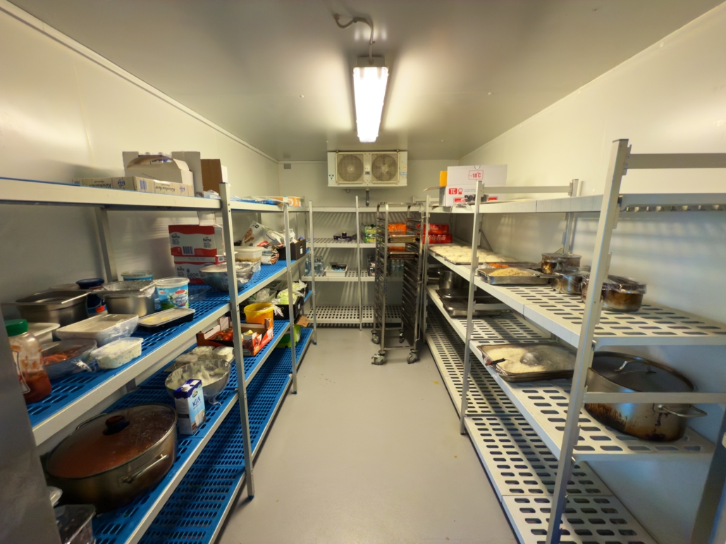 - To separate indgange; én direkte til køkkenet og én via entré med adgang til flere store køle- og fryserum