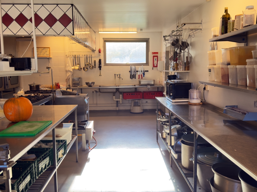 Køkkenet er indrettet til storproduktion, hvor du får: