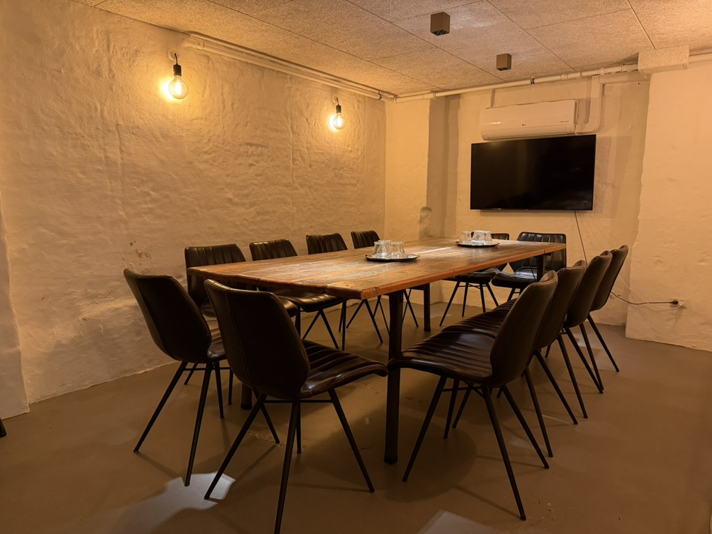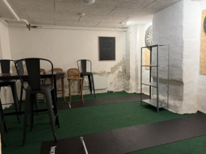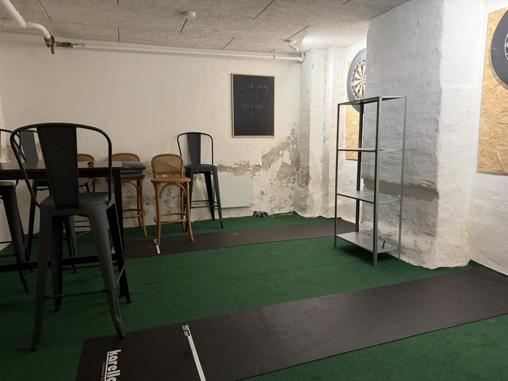 Kælderplan rummer et stemningsfuldt selskabslokale samt et separat aktivitetsrum med dartskiver – ideelt til events, private arrangementer og sociale sammenkomster. Herudover findes et pænt og velindrettet gæstetoilet.