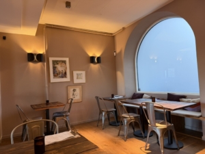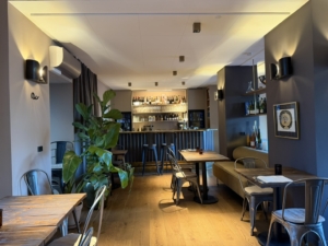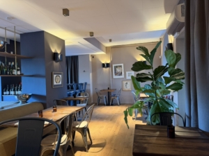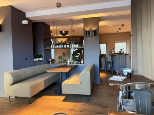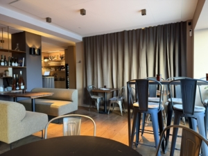 Stueplan byder på en elegant og indbydende vinbar med ca. 48 siddepladser, fordelt på hyggelige sofaarrangementer, intime kroge og den smukke, markante bar. Lokalet fremstår lyst, moderne og yderst velholdt – alt står skarpt og i særdeles god stand.