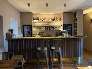 Her mødes stemning, æstetik og kvalitet i en vinbar, hvor der er investeret betydelige midler i inventar, materialer, tekstiler, lys- og lydinstallationer. Indretningen fremstår gennemført, luksuriøs og tidløs – med en atmosfære, der emmer af eksklusivitet og varme.